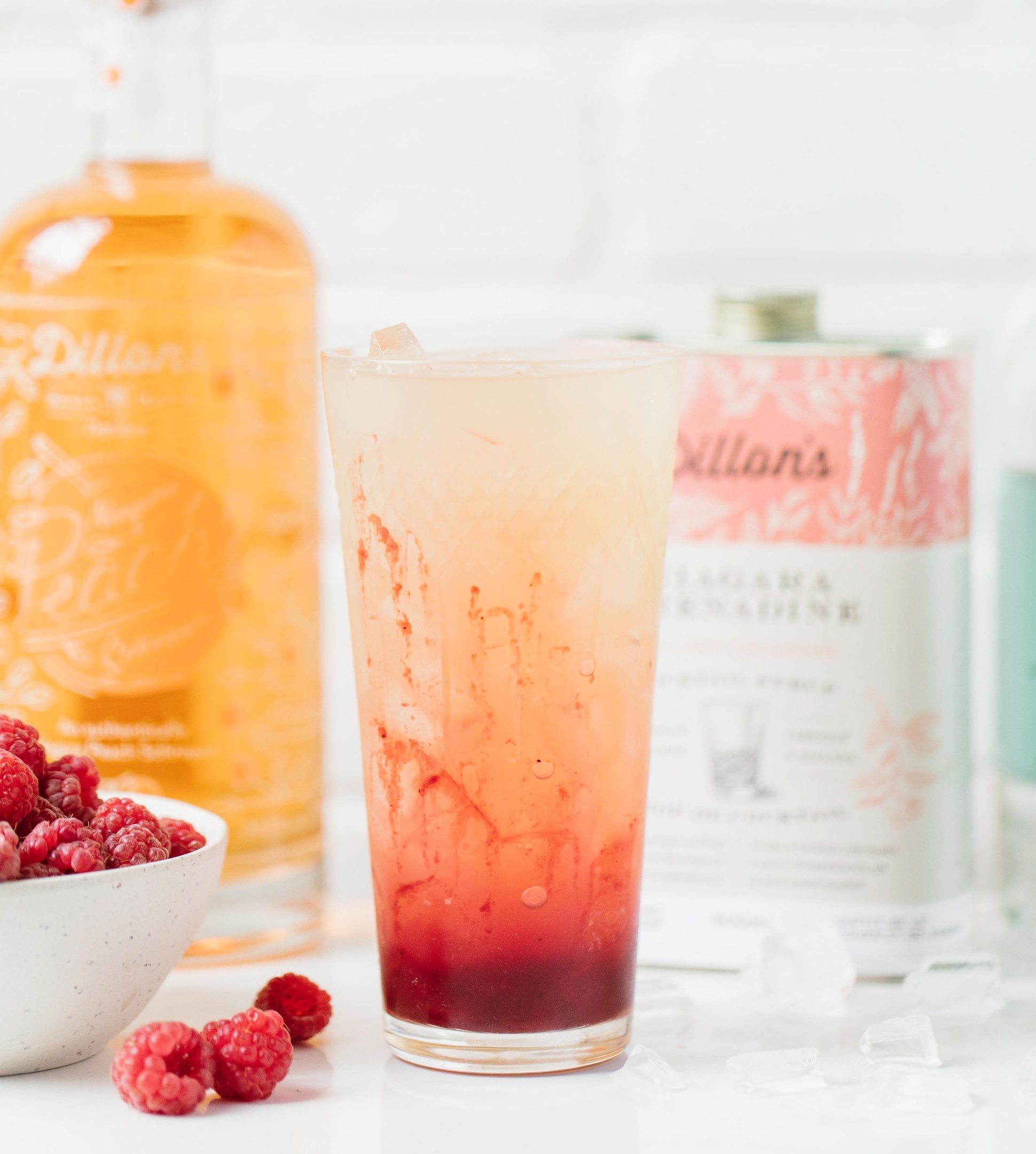 2. Strain your cocktail in an ice filled Collins glass, add the ginger beer and grenadine.