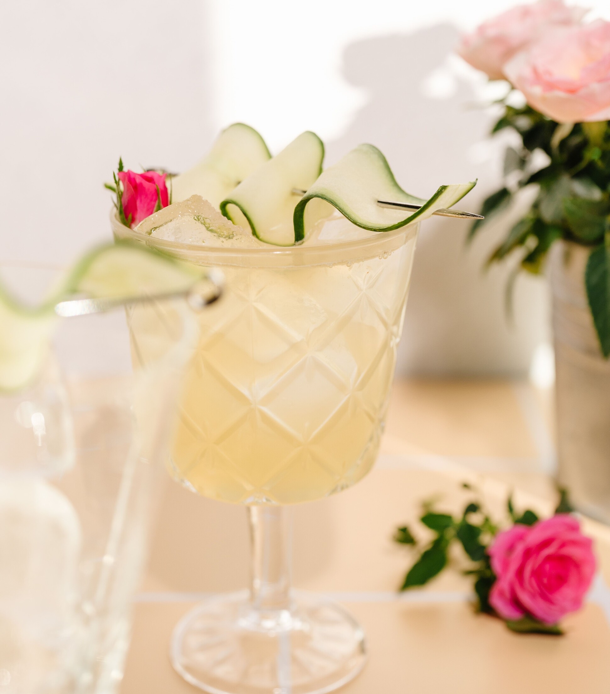3. Strain into an ice-filled glass & garnish with cucumber ribbon.